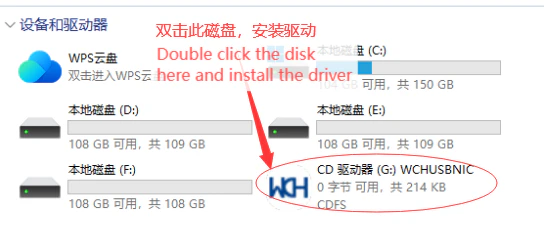 - 将线缆插入网络端口后,将出现如下图所示的磁盘。
