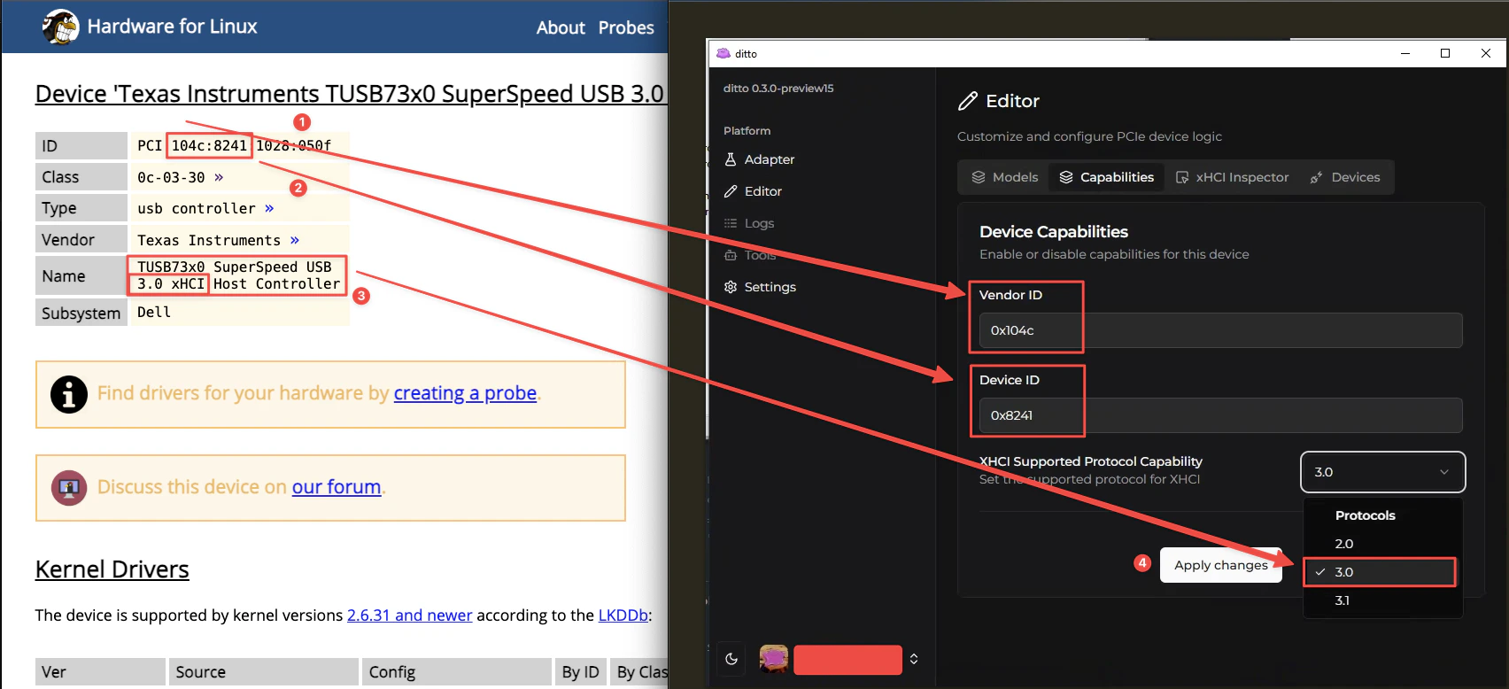 - Based on your selected device, fill in the information. If you are unsure how to identify the Vendor ID and Device ID, you can use the tools below. Simply copy and paste the
