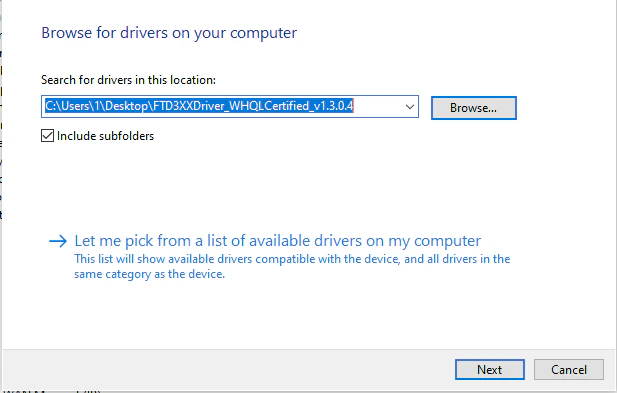Update driver, clickBrowse my computer for driver software, clickBrowse, select the driver folder we extracted to the desktop, and then clickOKto install the driver.
