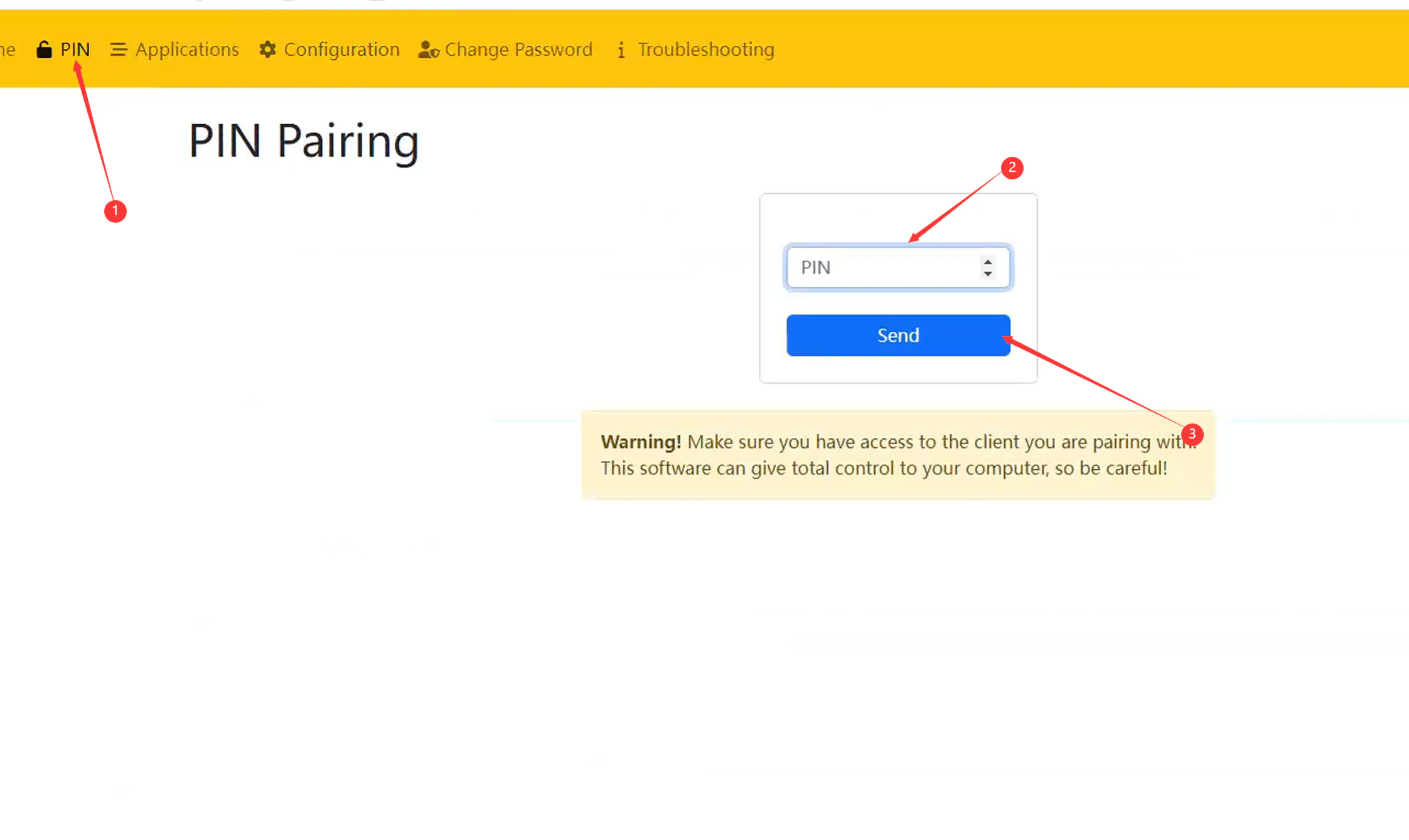 - After click Save, goto PIN page and fill the 4 digits PIN number you get on Step 3. Click Send.