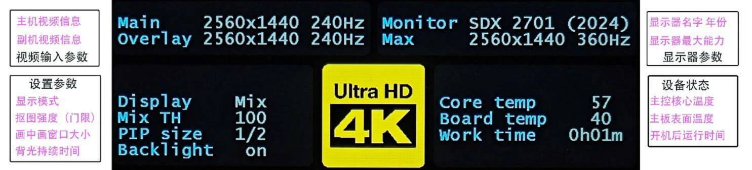 | Display Mode | Mix (Both) | M only (Only Main PC) | O only (Only Second PC) | PIP-4 (Not Available Yet) |