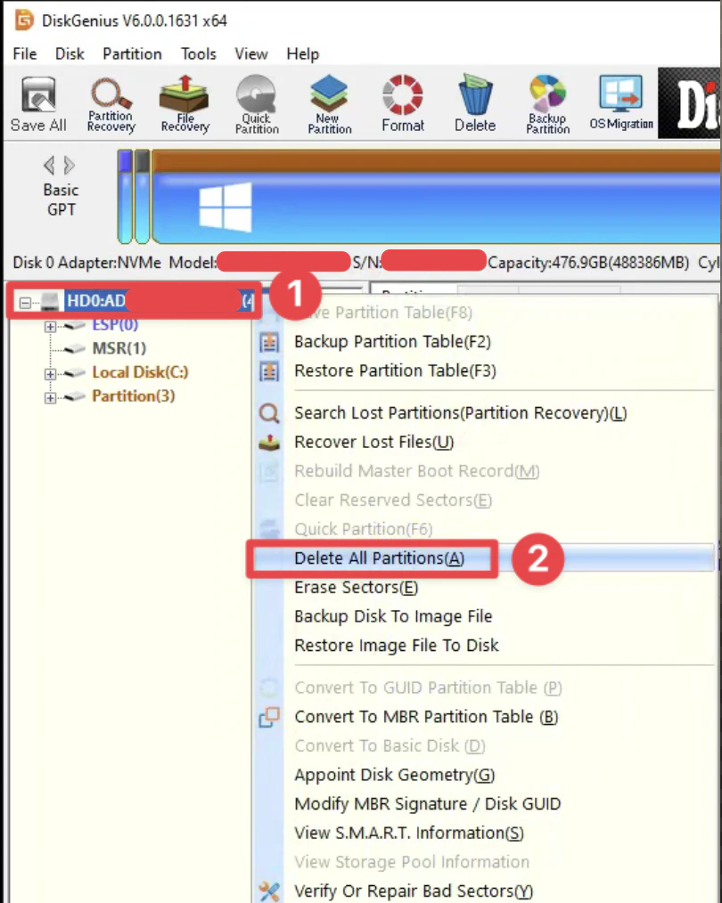 DiskGenius.exe. - Right-click the no-hwid disk drive ->